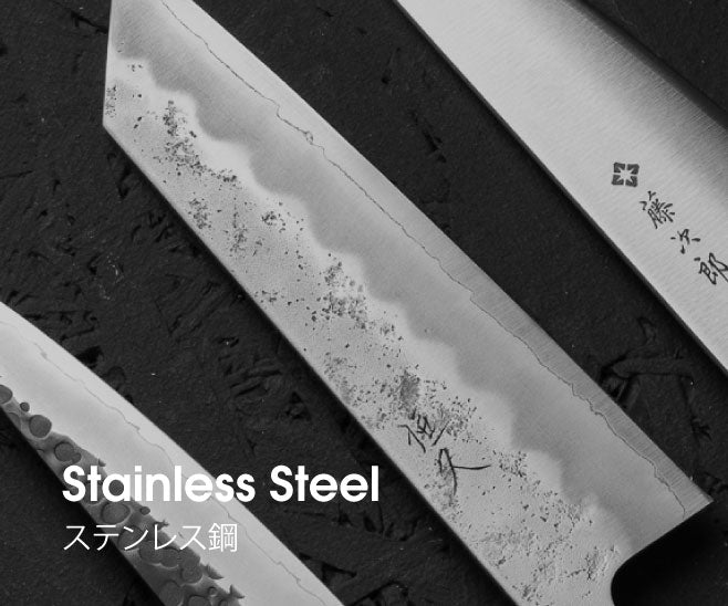 Often not quite as high in carbon content, stainless steels have added chromium which acts as a protecting element to oxidizing agents such as acidic foods and water. Generally speaking, when a steel has 12% or above in Chromium content, it is regarded as a stainless steel.