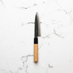 The Petty knife, a quintessential tool in Japanese cuisine, is a smaller utility knife used for precise, delicate tasks. Often considered a smaller sibling to the chef's knife, it excels in hand-held tasks like peeling, trimming, and intricate cutting. Its versatility makes it an essential for detailed culinary work.