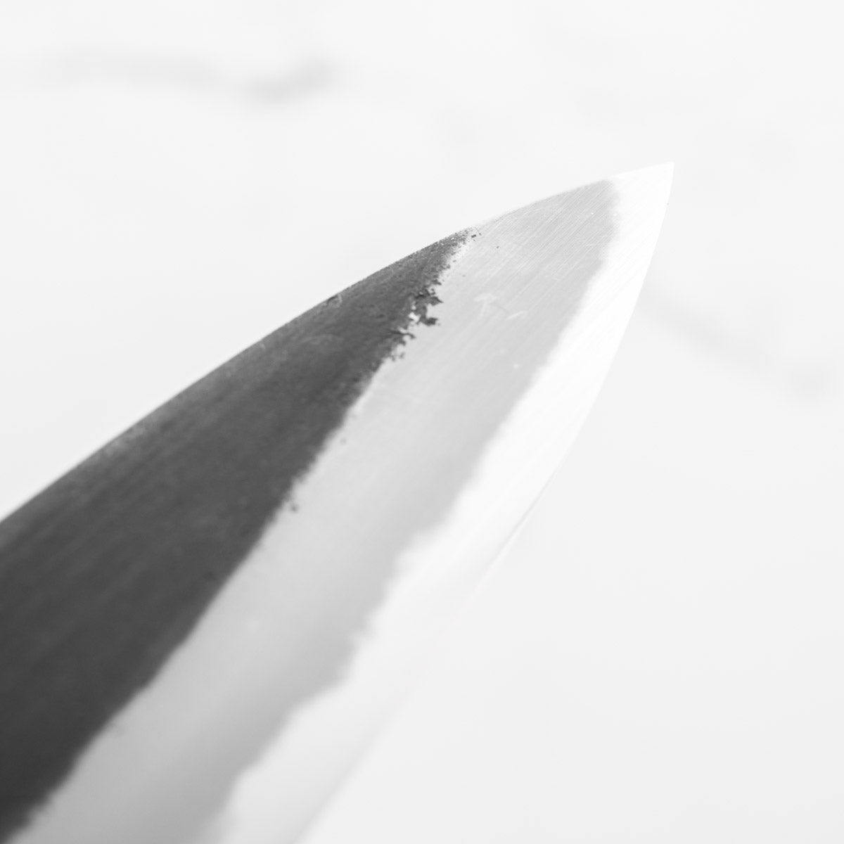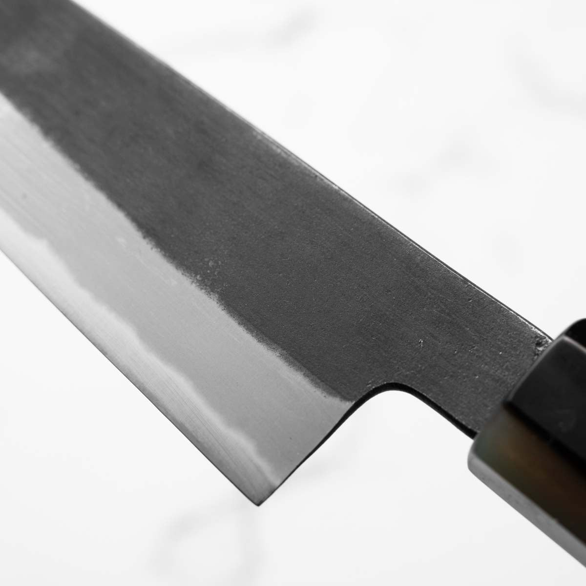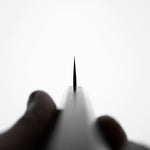 Japanese White Steel #2, a traditional high-carbon steel, is cherished for its purity and fine grain structure, enabling razor-sharp edges, at the cost of being reactive. It is one of the easiest steels to sharpen, but cannot be left wet for even short periods otherwise rust spots can occur. If you’re fastidious in your knife maintenance, this knife steel can be extremely rewarding to use.