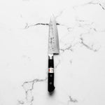 The Petty knife, a quintessential tool in Japanese cuisine, is a smaller utility knife used for precise, delicate tasks. Often considered a smaller sibling to the chef's knife, it excels in hand-held tasks like peeling, trimming, and intricate cutting. Its versatility makes it an essential for detailed culinary work.