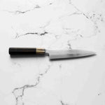 The Petty knife, a quintessential tool in Japanese cuisine, is a smaller utility knife used for precise, delicate tasks. Often considered a smaller sibling to the chef's knife, it excels in hand-held tasks like peeling, trimming, and intricate cutting. Its versatility makes it an essential for detailed culinary work.