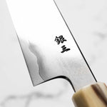 Japanese Ginsan steel, also known as Silver-3 or G3, is an underrated high-grade semi-stainless steel loved by many for being in the ‘goldilocks zone’ of knife steels. It holds a very respectable edge, but is effortless to sharpen. It is considered the semi-stainless version of White 2. It is the knife steel of choice for many home cooks and professional chefs alike.