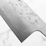 Japanese SLD steel is a semi-stainless steel crafted through advanced metallurgy. It is used often in Sanjo knives, has a non-chippy edge and is extremely tough. This high-carbon steel, enriched with chromium and molybdenum, offers excellent performance, but be mindful not to leave it wet for extended periods.