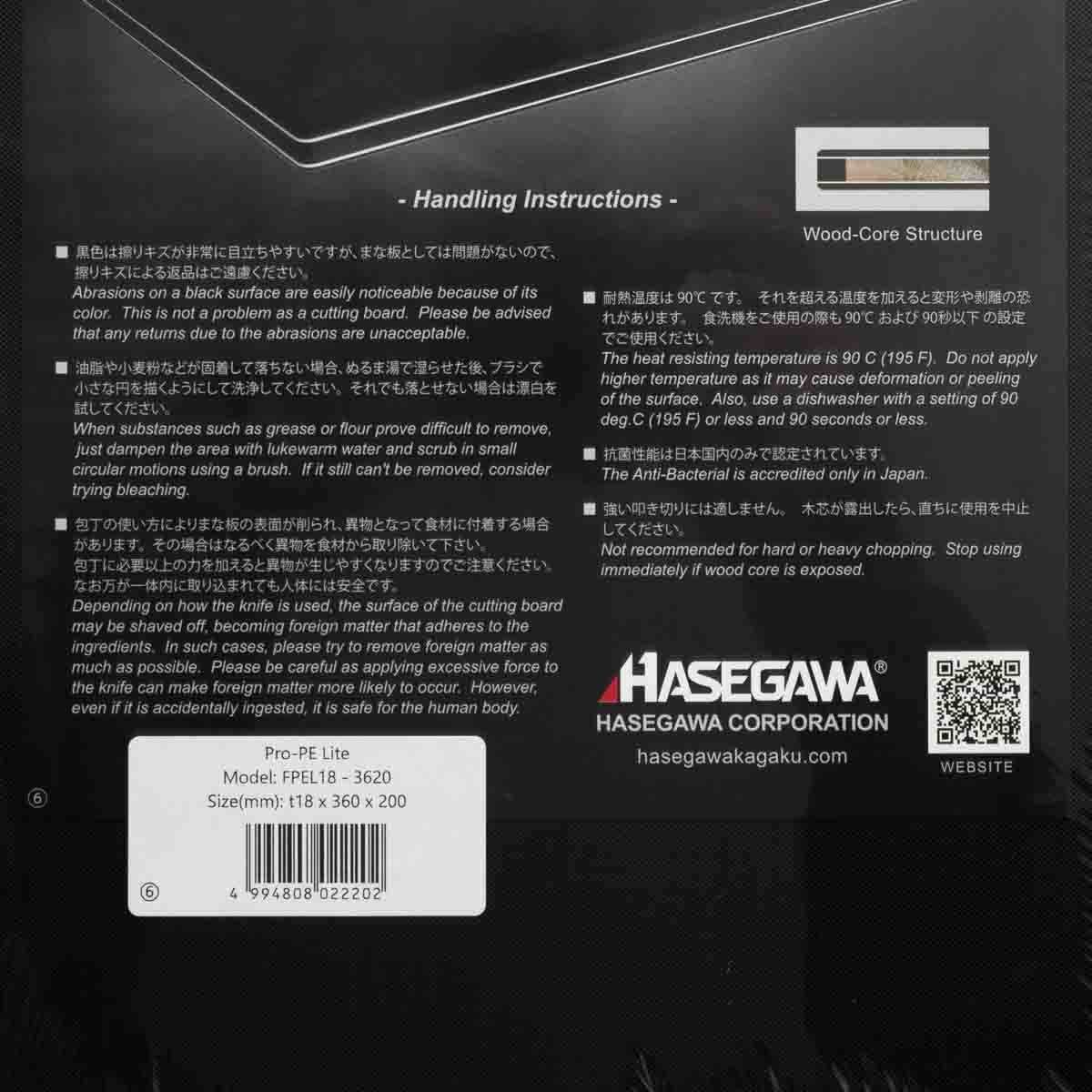 Hasegawa FPEL18-3620 Wood-Core Pro-PE Lite Black Cutting Board