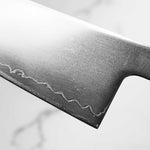 Japanese SLD steel is a semi-stainless steel crafted through advanced metallurgy. It is used often in Sanjo knives, has a non-chippy edge and is extremely tough. This high-carbon steel, enriched with chromium and molybdenum, offers excellent performance, but be mindful not to leave it wet for extended periods.