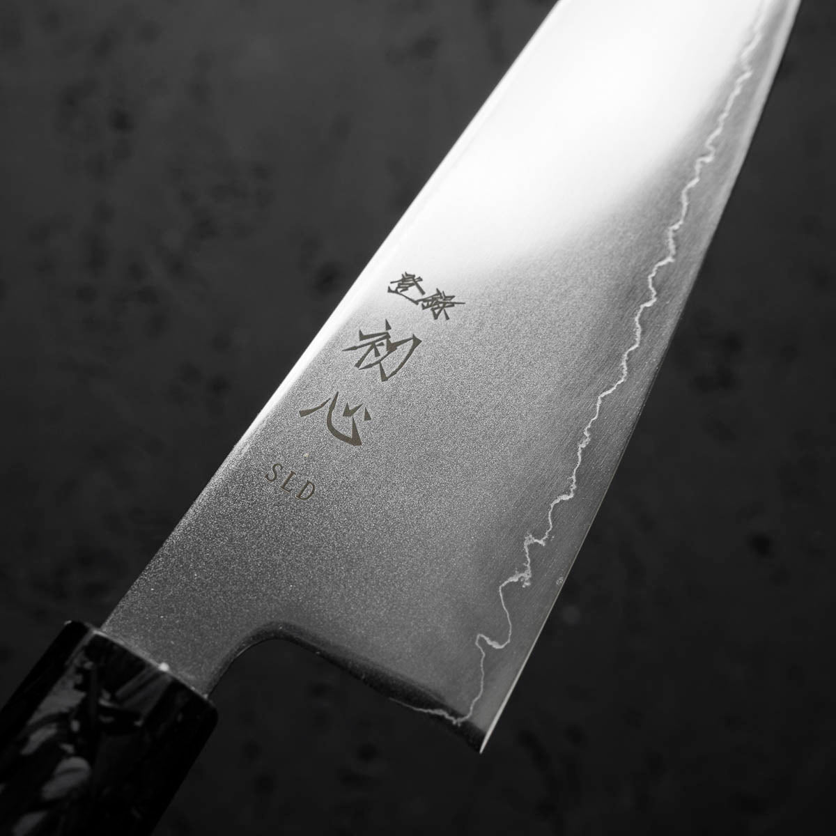 Japanese SLD steel is a semi-stainless steel crafted through advanced metallurgy. It is used often in Sanjo knives, has a non-chippy edge and is extremely tough. This high-carbon steel, enriched with chromium and molybdenum, offers excellent performance, but be mindful not to leave it wet for extended periods.