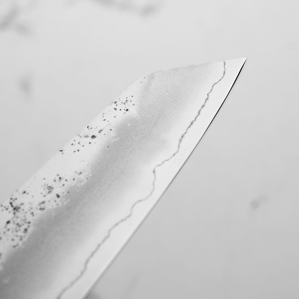 Japanese Ginsan steel, also known as Silver-3 or G3, is an underrated high-grade semi-stainless steel loved by many for being in the ‘goldilocks zone’ of knife steels. It holds a very respectable edge, but is effortless to sharpen. It is considered the semi-stainless version of White 2. It is the knife steel of choice for many home cooks and professional chefs alike.