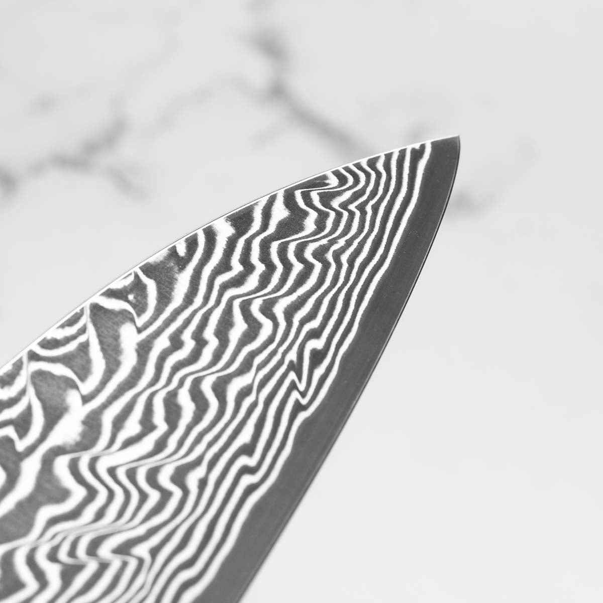 Under his personal brand Kintaro, he hand-forges blades featuring some of the most striking Damascus patterns we’ve seen, with crisp lines and elegant finishes. His knives are lightweight, thin behind the edge, and a pleasure to sharpen and maintain — a combination that makes them equally suited to professional kitchens and passionate home cooks.