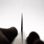 Embracing a rapid rise in popularity for his unique designs and committment to striving for perfection, Shunsuke Manaka is the man behind Kisuke knives. From the sketchbook to the kitchen, he is the sole craftsman behind the entire knifemaking process. Shunsuke engineers these knives using a process known as Warikomi, whereby a glowing hot piece of steel is split, and the core steel is wedged in and forged together. The split steel becomes the outer layers, and the core steel is exposed at the edge. This process produces a stronger, tougher more durable blade.