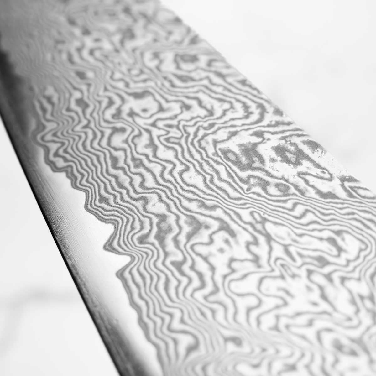 This knife is made from a high-carbon steel and as such, will require a little more care than a regular off-the-shelf knife. It must be dried shortly after use, as prolonged exposure to moisture can cause rust spots to appear. A very light coat of oil during storage also helps to prevent rust spots. A patina (colouration and seasoning of the steel) will occur with use.