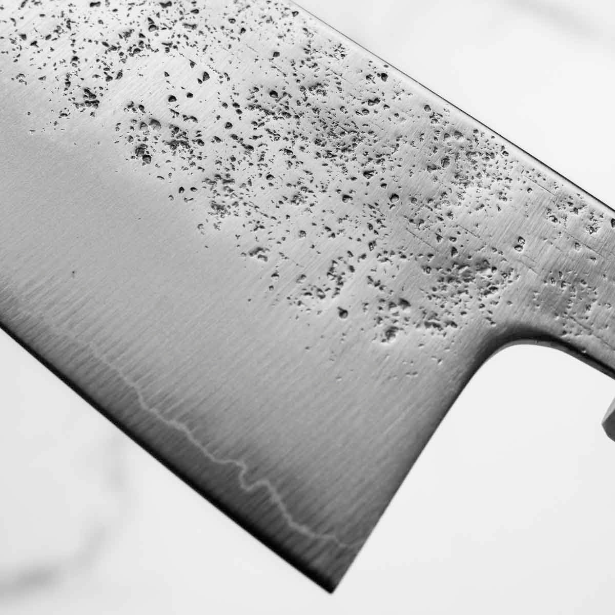 Japanese Ginsan steel, also known as Silver-3 or G3, is an underrated high-grade semi-stainless steel loved by many for being in the ‘goldilocks zone’ of knife steels. It holds a very respectable edge, but is effortless to sharpen. It is considered the semi-stainless version of White 2. It is the knife steel of choice for many home cooks and professional chefs alike.