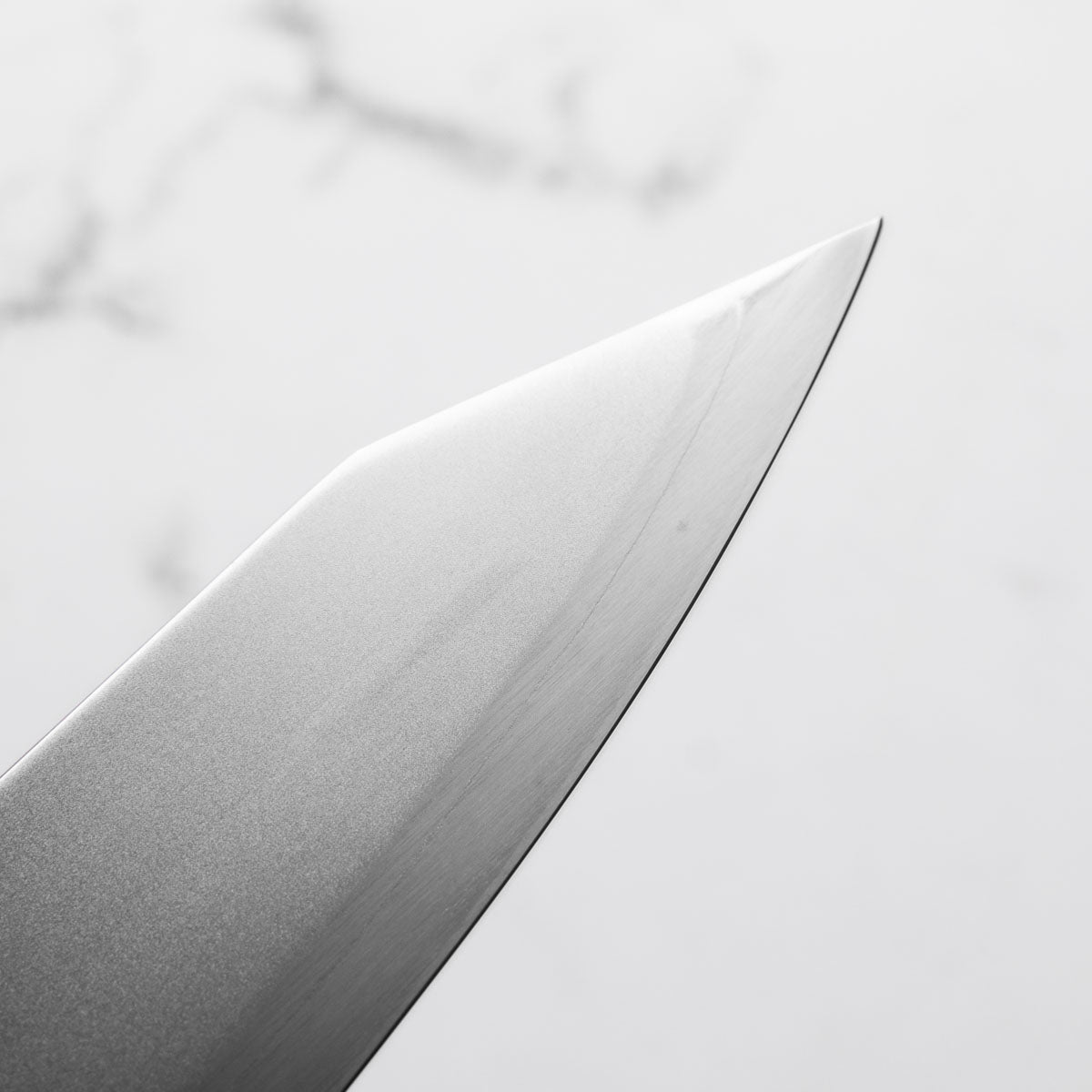 This knife is made from a high-carbon steel and as such, will require a little more care than a regular off-the-shelf knife. It must be dried shortly after use, as prolonged exposure to moisture can cause rust spots to appear. A very light coat of oil during storage also helps to prevent rust spots. A patina (colouration and seasoning of the steel) will occur with use.