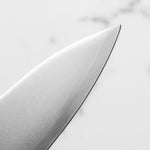 The Petty knife, a quintessential tool in Japanese cuisine, is a smaller utility knife used for precise, delicate tasks. Often considered a smaller sibling to the chef's knife, it excels in hand-held tasks like peeling, trimming, and intricate cutting. Its versatility makes it an essential for detailed culinary work.
