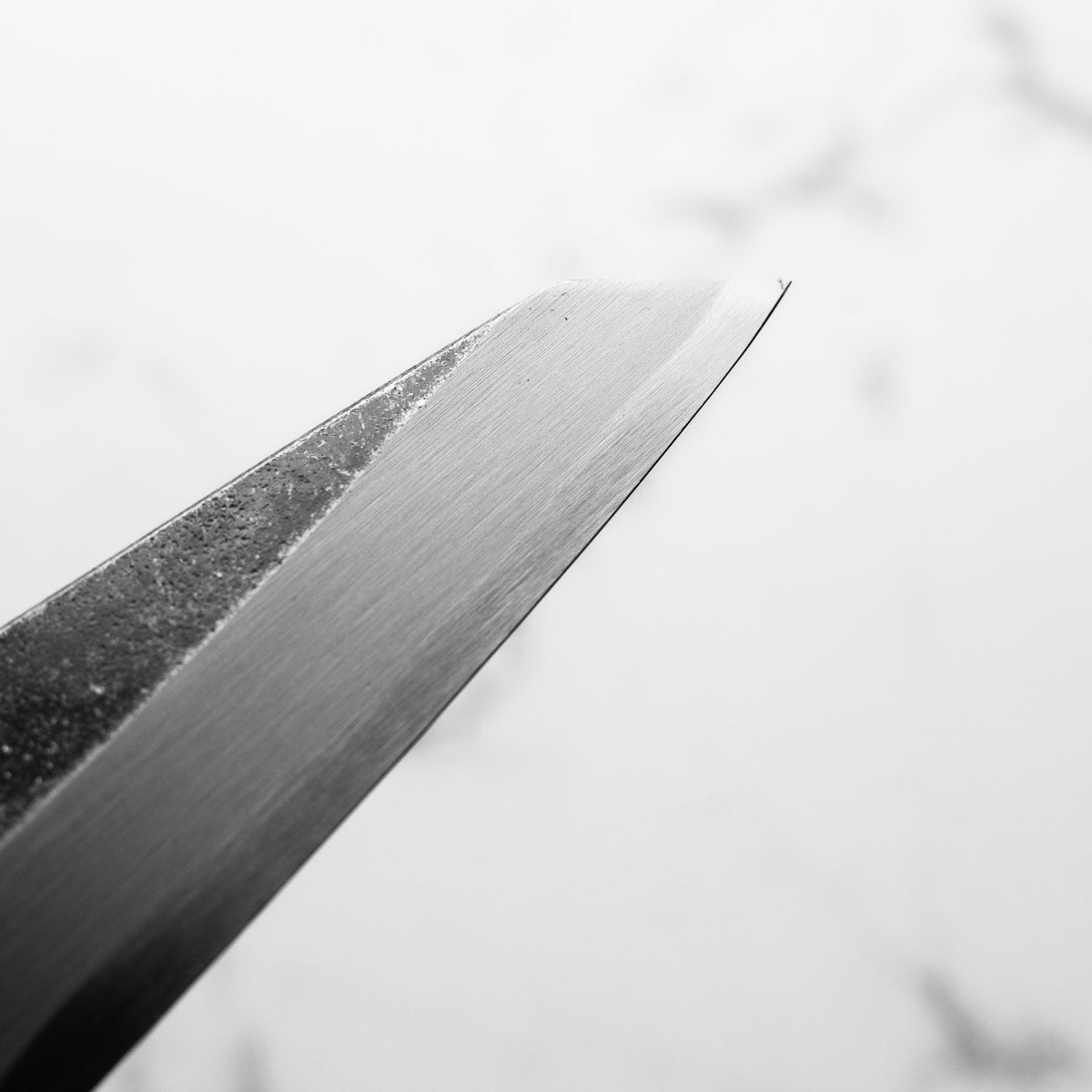 This knife is made from a high-carbon steel and as such, will require a little more care than a regular off-the-shelf knife. It must be dried shortly after use, as prolonged exposure to moisture can cause rust spots to appear. A very light coat of oil during storage also helps to prevent rust spots. A patina (colouration and seasoning of the steel) will occur with use.