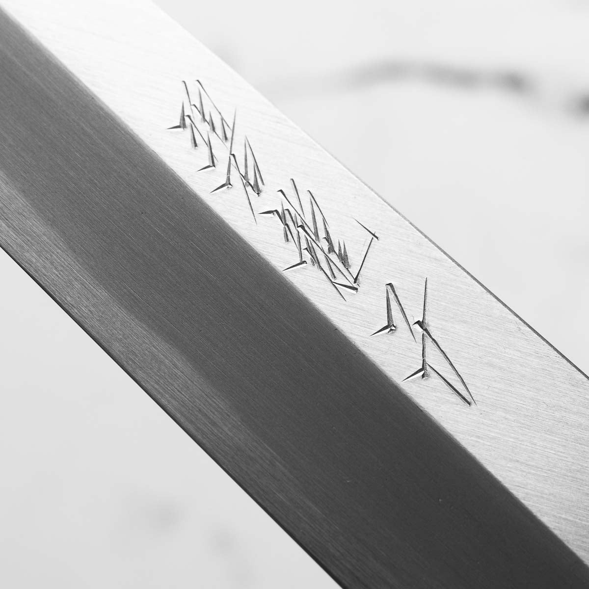 Japanese Ginsan steel, also known as Silver-3 or G3, is an underrated high-grade semi-stainless steel loved by many for being in the ‘goldilocks zone’ of knife steels. It holds a very respectable edge, but is effortless to sharpen. It is considered the semi-stainless version of White 2. It is the knife steel of choice for many home cooks and professional chefs alike.