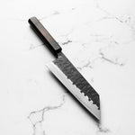 The Bunka knife, a versatile and traditional Japanese kitchen tool, features a distinctive, angular tip and a wide blade. It's designed for precision tasks like slicing, dicing, and chopping. Ideal for handling vegetables, meat, and fish, the Bunka is a multifunctional knife celebrated for its utility and unique aesthetic.
