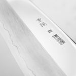Japanese Ginsan steel, also known as Silver-3 or G3, is an underrated high-grade semi-stainless steel loved by many for being in the ‘goldilocks zone’ of knife steels. It holds a very respectable edge, but is effortless to sharpen. It is considered the semi-stainless version of White 2. It is the knife steel of choice for many home cooks and professional chefs alike.