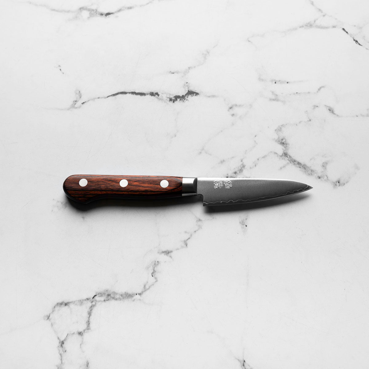 A paring knife, sometimes also known as a petty knife, is a small yet versatile tool, ideal for precise culinary tasks. Traditionally used for peeling, shaping, and delicate cutting, its compact size and sharp edge allow for meticulous control, making it essential for detailed work in fruits, vegetables, and garnishes.