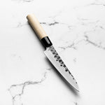 The Petty knife, a quintessential tool in Japanese cuisine, is a smaller utility knife used for precise, delicate tasks. Often considered a smaller sibling to the chef's knife, it excels in hand-held tasks like peeling, trimming, and intricate cutting. Its versatility makes it an essential for detailed culinary work.