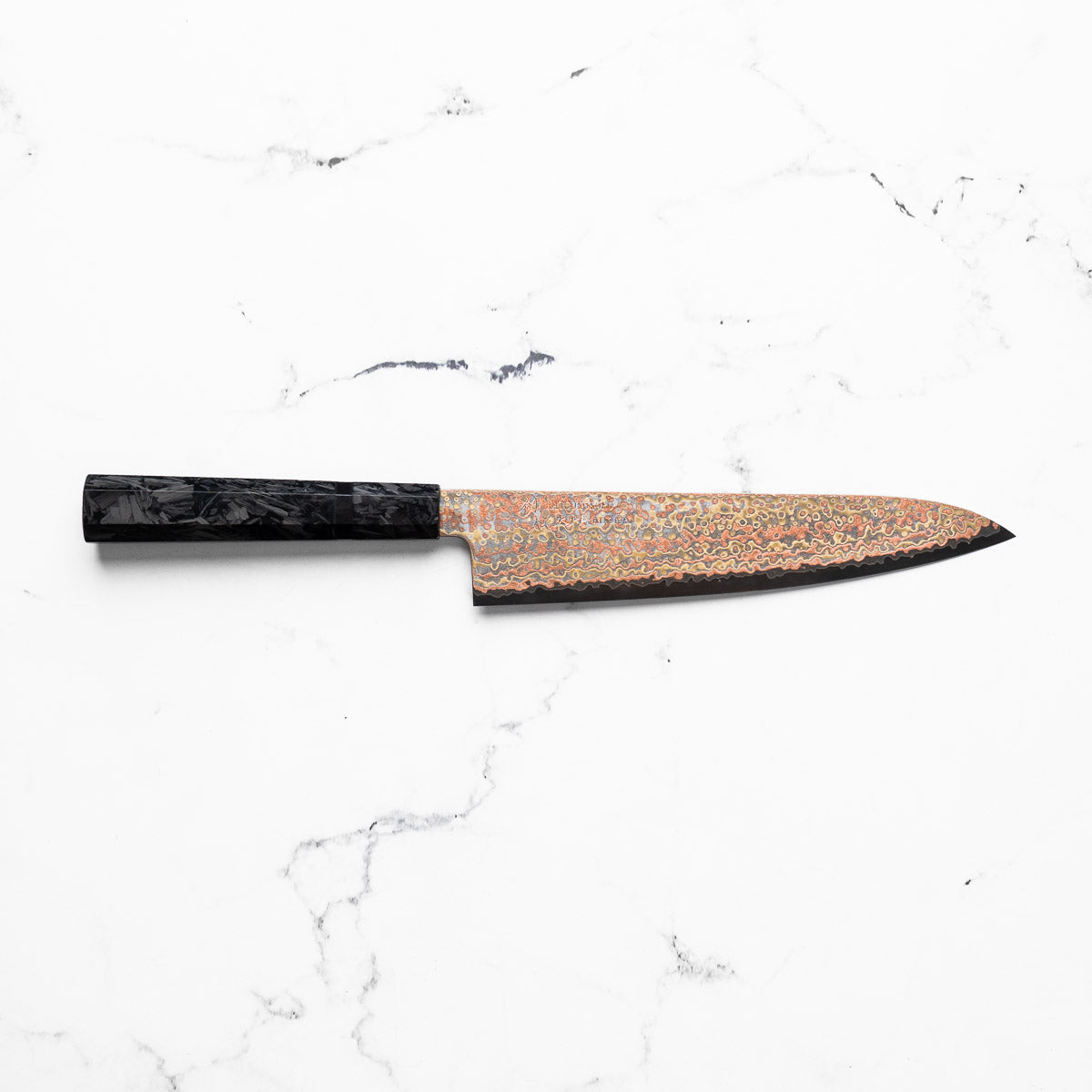 Hatsukokoro Hinotori V-Toku 2 Rainbow Damascus Gyuto 210mm - Dark Carbon Fibre