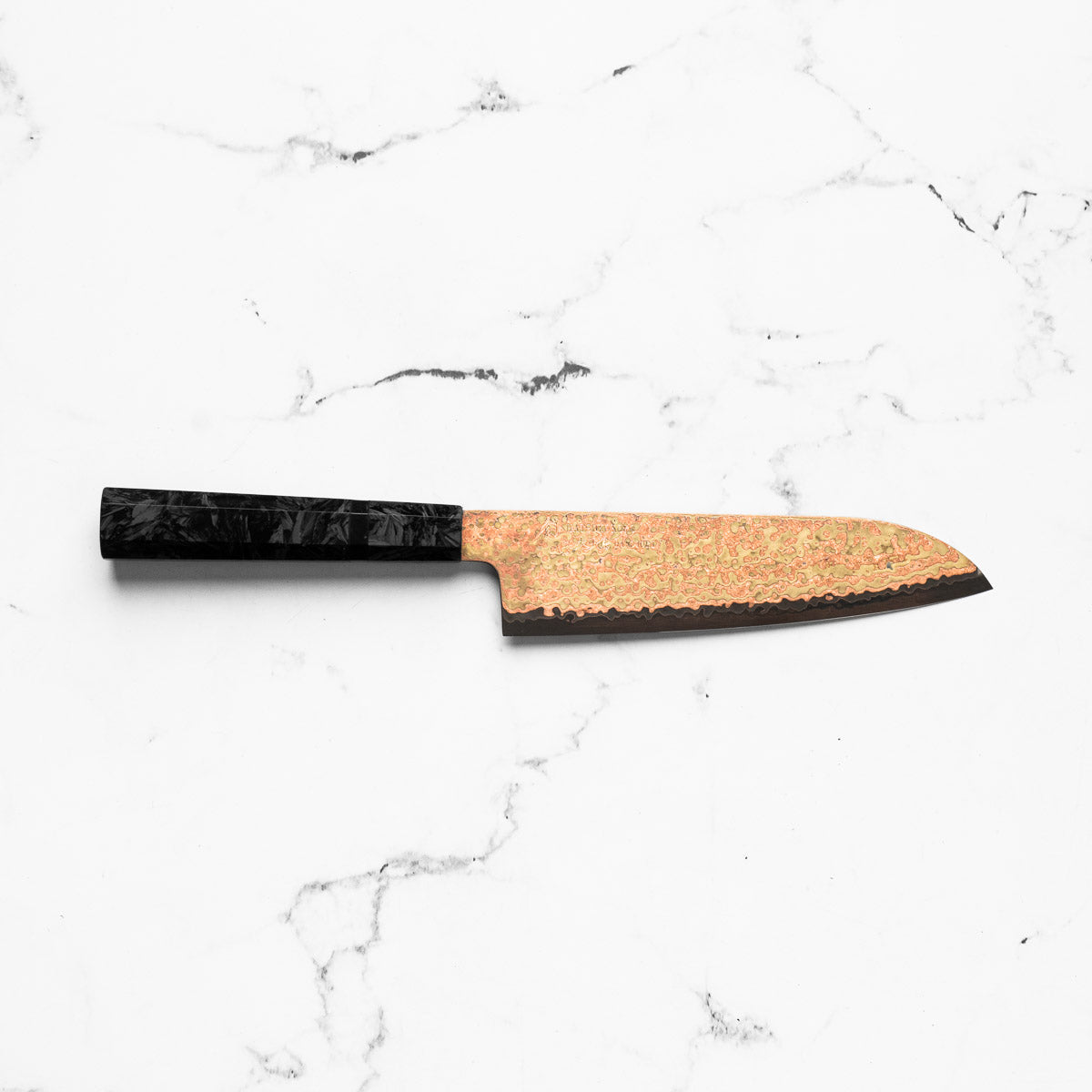 Hatsukokoro Hinotori V-Toku 2 Rainbow Damascus Santoku 180mm - Dark Carbon Fibre