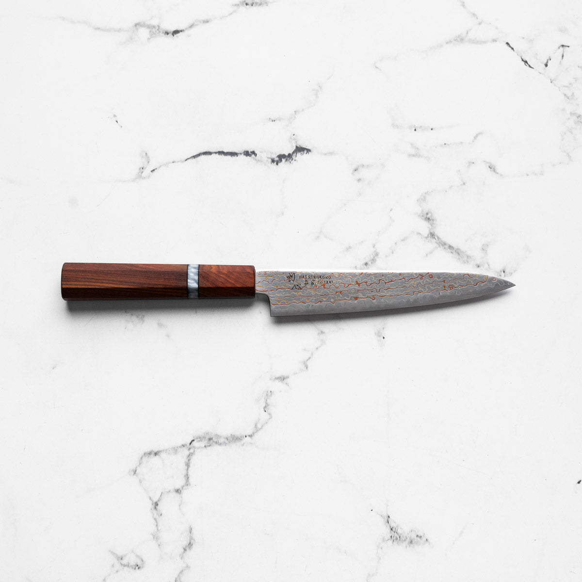The Petty is your smaller knife for delicate work. Think mincing garlic, trimming up chicken thighs or meats, skinning fruit, and just about anything else the Bunka or Gyuto is too large for. It's an essential part of your knife range and we use ours almost daily.