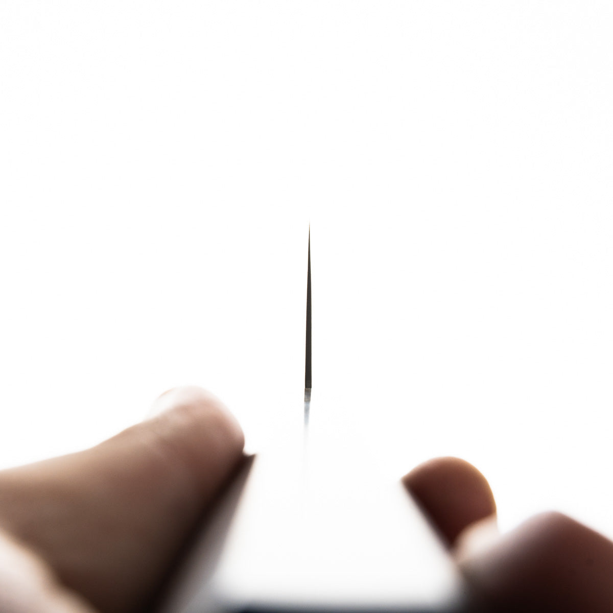 Japanese SG2, also known as R2 steel, is a high-end, powdered metallurgy stainless steel and one of the finest knife-making steels available in Japan. It is a favourite of many for its exceptional hardness and edge retention. Its fine, uniform grain structure enables razor-sharp edges, all the while holding an edge for much longer than Carbon steel knives, without needing to be concerned about rust appearing.