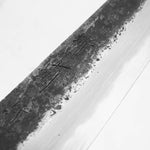Japanese White Steel #2, a traditional high-carbon steel, is cherished for its purity and fine grain structure, enabling razor-sharp edges, at the cost of being reactive. It is one of the easiest steels to sharpen, but cannot be left wet for even short periods otherwise rust spots can occur. If you’re fastidious in your knife maintenance, this knife can steel can be extremely rewarding to use.