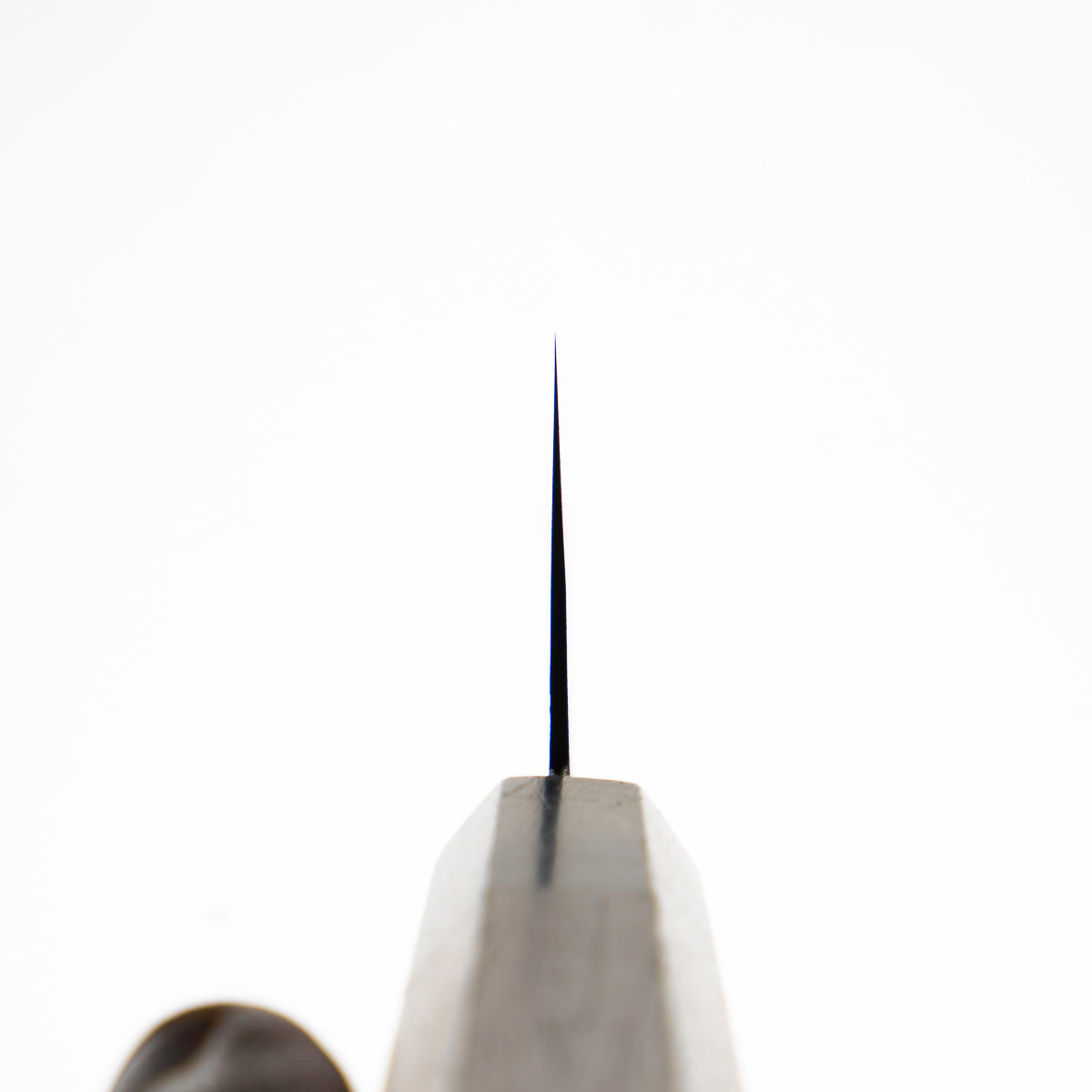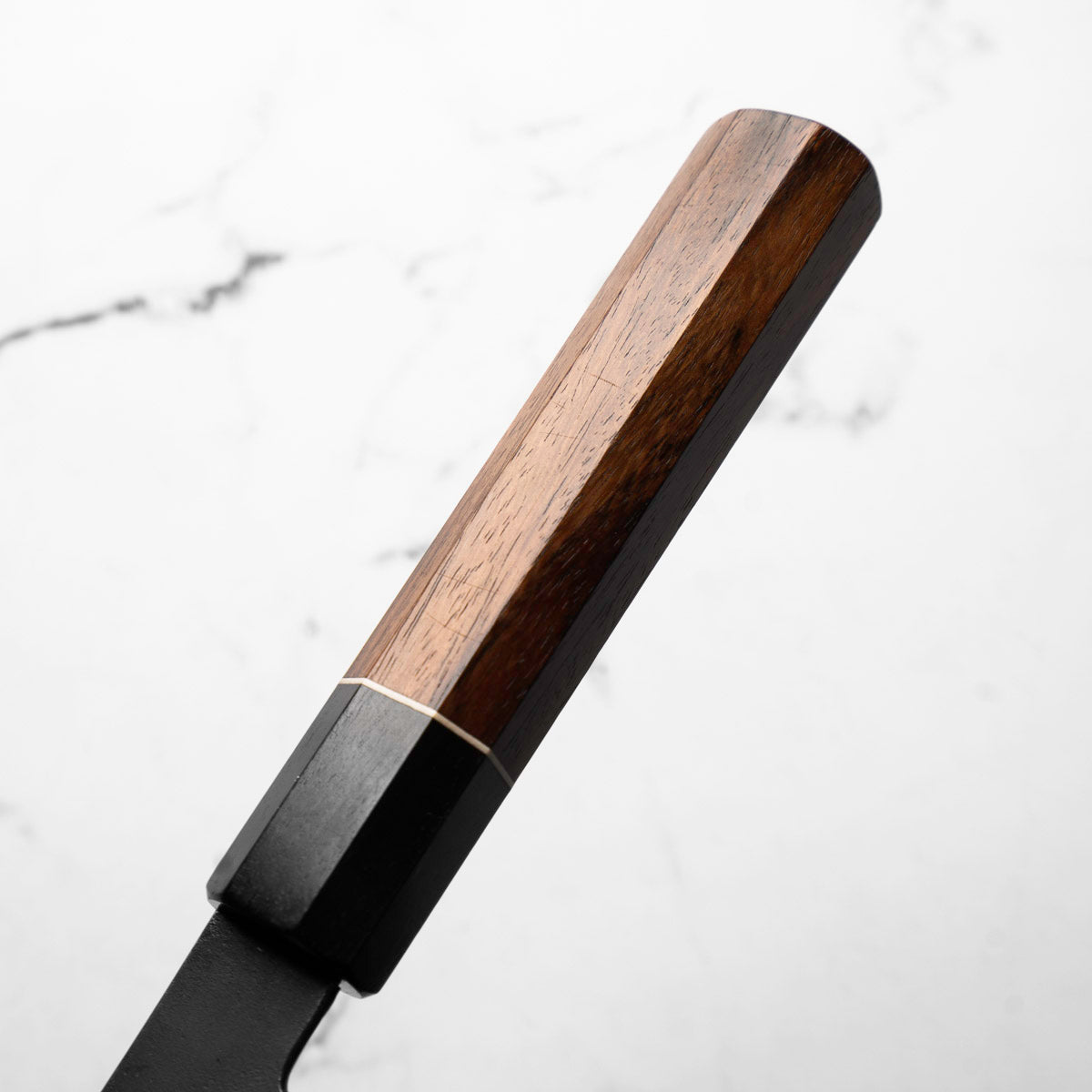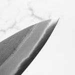 Japanese White Steel #2, a traditional high-carbon steel, is cherished for its purity and fine grain structure, enabling razor-sharp edges, at the cost of being reactive. It is one of the easiest steels to sharpen, but cannot be left wet for even short periods otherwise rust spots can occur. If you’re fastidious in your knife maintenance, this knife steel can be extremely rewarding to use.