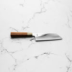 The Bunka knife, a versatile and traditional Japanese kitchen tool, features a distinctive, angular tip and a wide blade. It's designed for precision tasks like slicing, dicing, and chopping. Ideal for handling vegetables, meat, and fish, the Bunka is a multifunctional knife celebrated for its utility and unique aesthetic.