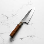 The Bunka knife, a versatile and traditional Japanese kitchen tool, features a distinctive, angular tip and a wide blade. It's designed for precision tasks like slicing, dicing, and chopping. Ideal for handling vegetables, meat, and fish, the Bunka is a multifunctional knife celebrated for its utility and unique aesthetic.