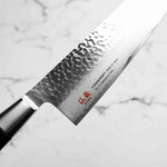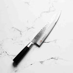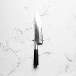 The Santoku knife, a classic in Japanese kitchens, translates to "three virtues," symbolizing its proficiency in slicing, dicing, and mincing. With a shorter, versatile blade and a balanced design, it's ideal for a range of tasks, from cutting meat to chopping vegetables, making it a beloved all-purpose tool.