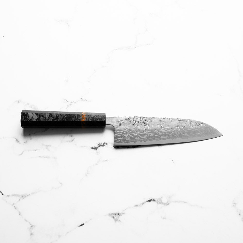 Tsunehisa Swedish Stainless Washiji Santoku 165mm - Carbon Fibre