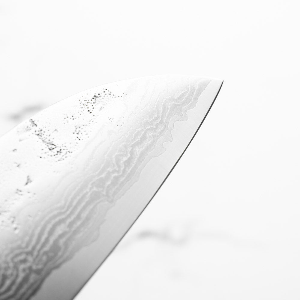 Japanese SLD steel is a semi-stainless steel crafted through advanced metallurgy. It is used often in Sanjo knives, has a non-chippy edge and is extremely tough. This high-carbon steel, enriched with chromium and molybdenum, offers excellent performance, but be mindful not to leave it wet for extended periods.