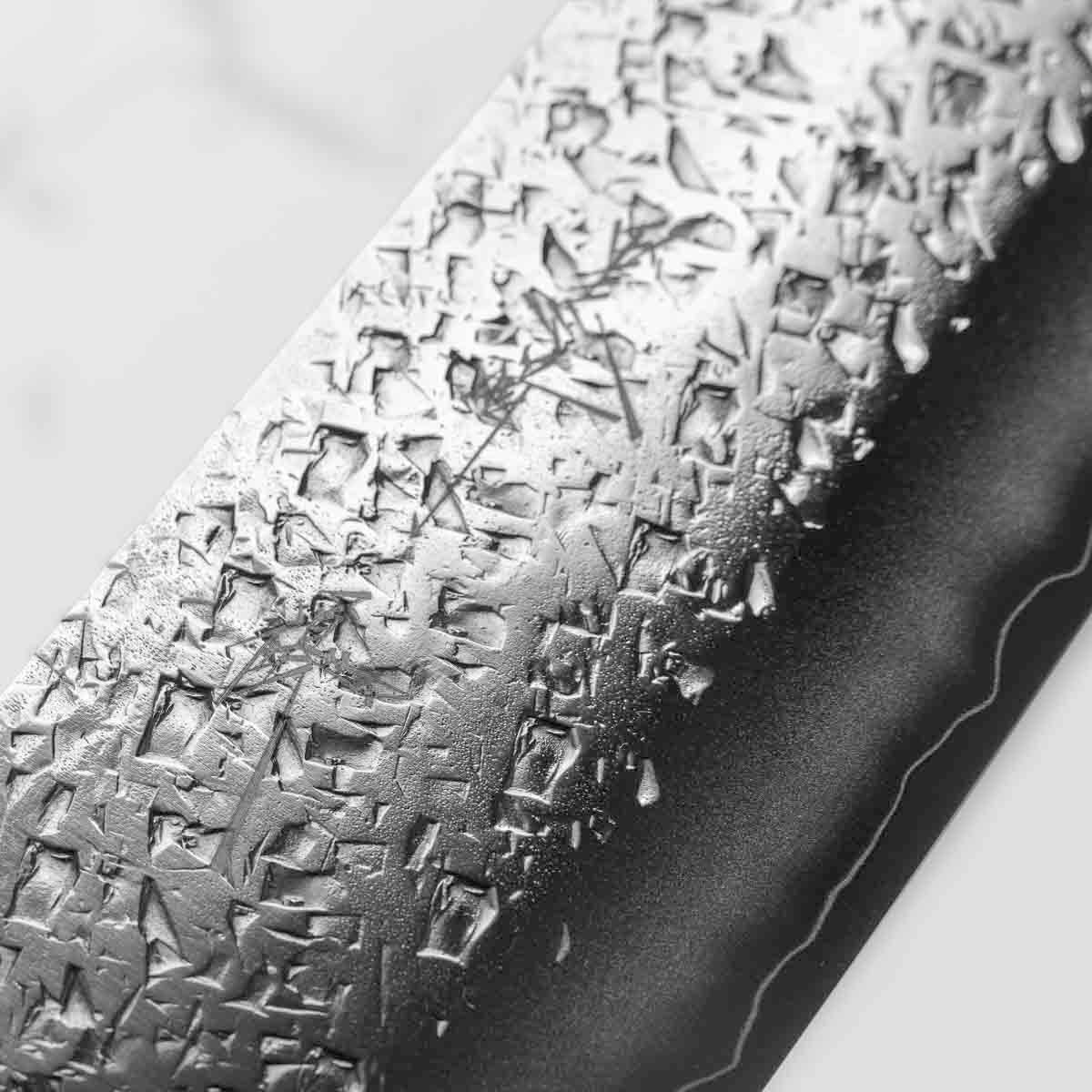 Japanese SG2, also known as R2 steel, is a high-end, powdered metallurgy stainless steel and one of the finest knife-making steels available in Japan. It is a favourite of many for its exceptional hardness and edge retention. Its fine, uniform grain structure enables razor-sharp edges, all the while holding an edge for much longer than Carbon steel knives, without needing to be concerned about rust appearing.