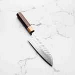 The Santoku knife, a classic in Japanese kitchens, translates to "three virtues," symbolizing its proficiency in slicing, dicing, and mincing. With a shorter, versatile blade and a balanced design, it's ideal for a range of tasks, from cutting meat to chopping vegetables, making it a beloved all-purpose tool.