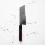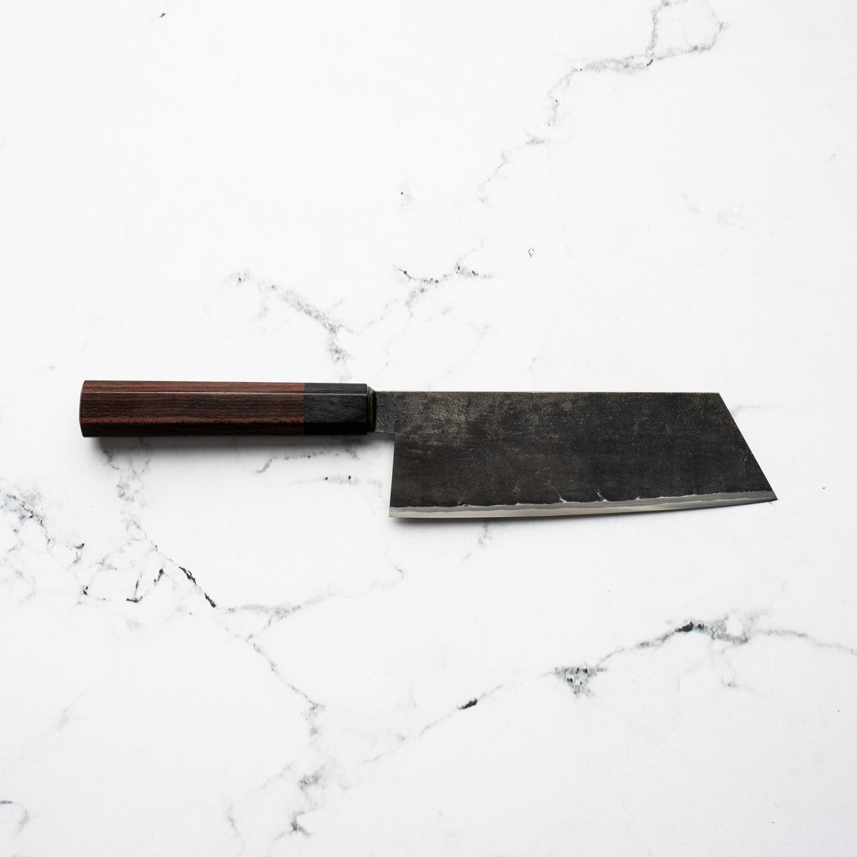Takeda’s knives are instantly recognizable — tall, kurouchi-finished blades, incredibly lightweight, and ground to an ultra-low bevel that delivers outstanding cutting performance. Often forged from Aogami Super Steel (NAS), these knives are known for holding a razor-sharp edge while being remarkably easy to maintain.