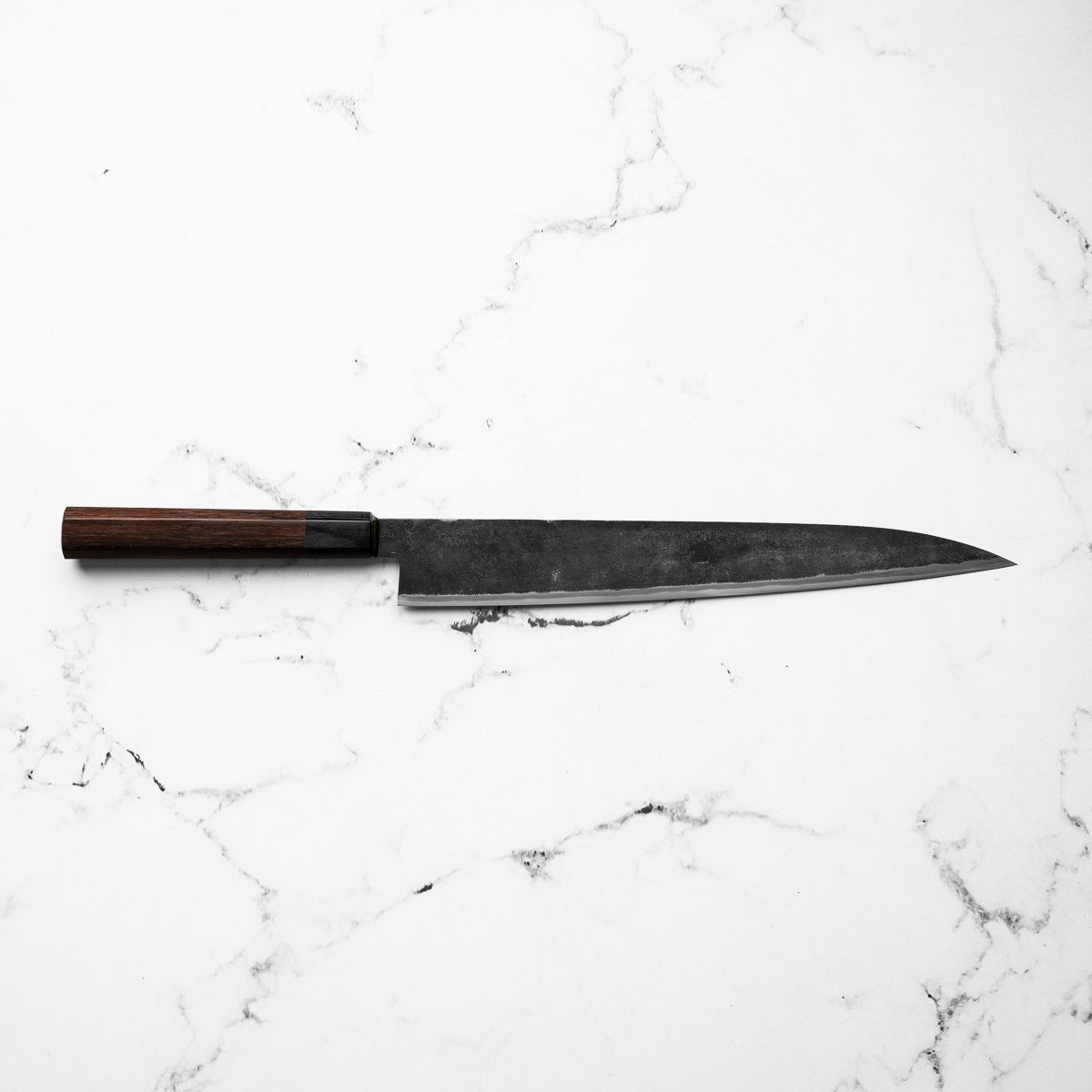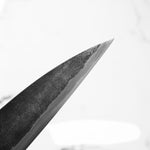 Takeda’s knives are instantly recognizable — tall, kurouchi-finished blades, incredibly lightweight, and ground to an ultra-low bevel that delivers outstanding cutting performance. Often forged from Aogami Super Steel (NAS), these knives are known for holding a razor-sharp edge while being remarkably easy to maintain.