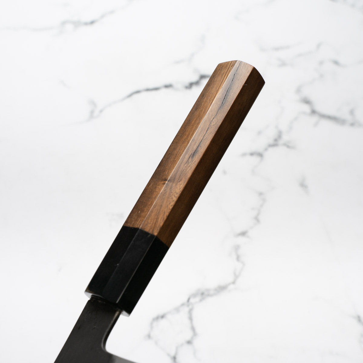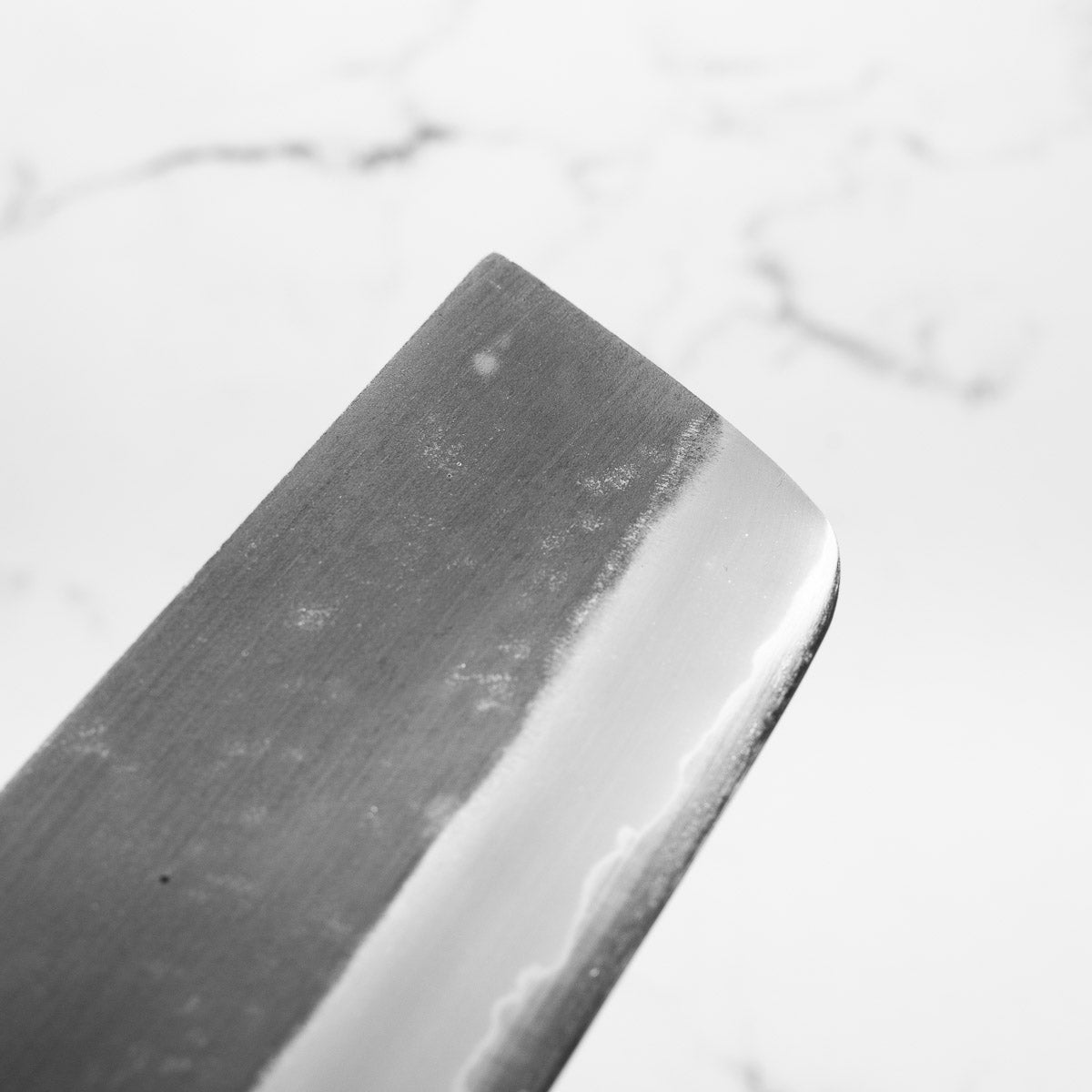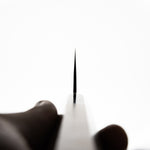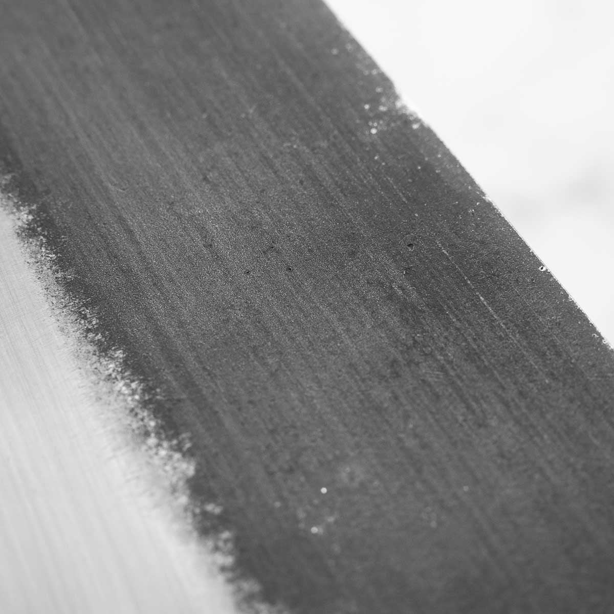Japanese White Steel #2, a traditional high-carbon steel, is cherished for its purity and fine grain structure, enabling razor-sharp edges, at the cost of being reactive. It is one of the easiest steels to sharpen, but cannot be left wet for even short periods otherwise rust spots can occur. If you’re fastidious in your knife maintenance, this knife steel can be extremely rewarding to use.