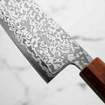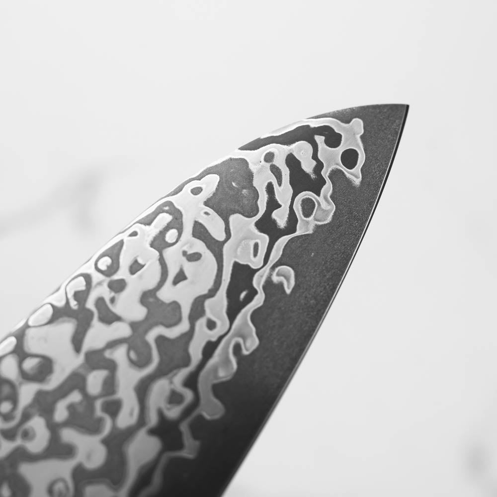 Japanese SLD steel is a semi-stainless steel crafted through advanced metallurgy. It is used often in Sanjo knives, has a non-chippy edge and is extremely tough. This high-carbon steel, enriched with chromium and molybdenum, offers excellent performance, but be mindful not to leave it wet for extended periods.