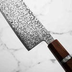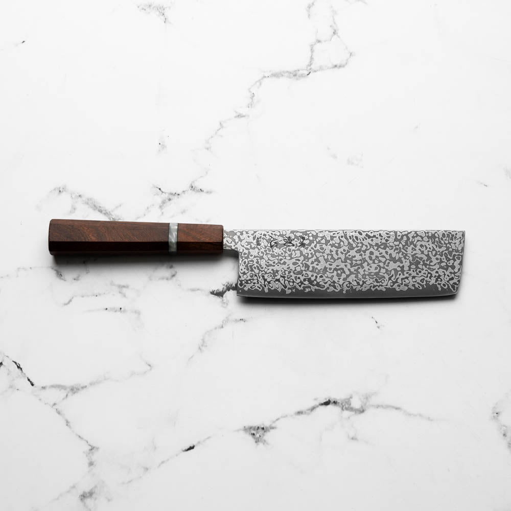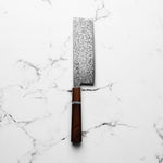 The Nakiri knife, revered in Japanese culinary traditions, is engineered for exceptional vegetable cutting. Featuring a distinct, straight-edged, and rectangular blade, it excels in creating uniform, precise cuts and aesthetic presentation. Its technical design ensures efficiency and precision, making it a valuable tool for both professional chefs and home cooks.