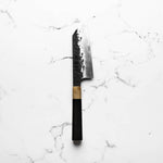 The Bunka knife, a versatile and traditional Japanese kitchen tool, features a distinctive, angular tip and a wide blade. It's designed for precision tasks like slicing, dicing, and chopping. Ideal for handling vegetables, meat, and fish, the Bunka is a multifunctional knife celebrated for its utility and unique aesthetic.