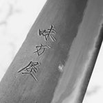 Japanese White Steel #2, a traditional high-carbon steel, is cherished for its purity and fine grain structure, enabling razor-sharp edges, at the cost of being reactive. It is one of the easiest steels to sharpen, but cannot be left wet for even short periods otherwise rust spots can occur. If you’re fastidious in your knife maintenance, this knife steel can be extremely rewarding to use.