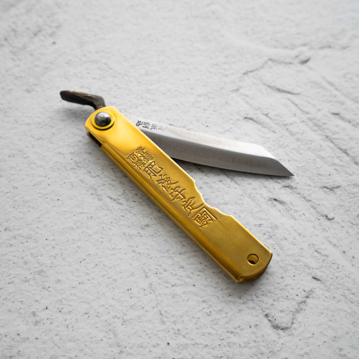 He named it “Higonokami Knife” because many of his customers were in Kumamoto area (formally Higo country), which turned out to dramatically increase his sales. The blades have gradually changed their shapes. Unlike single-edged knives, the double-edged blades (V-shaped cross section) were in those days considered common. The earlier blades had a sharper tip (shape of a bamboo leaf), but now they have square shapes. The sheaths had a vertically folding style and a cross folding style, now the vertical one has to be custom made.
