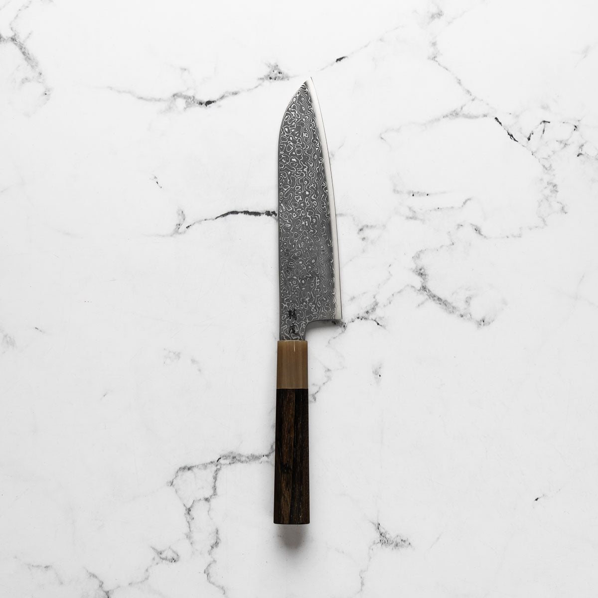 Seido VG10 Kurozome Nickel Damascus Santoku 180mm - Persimmon