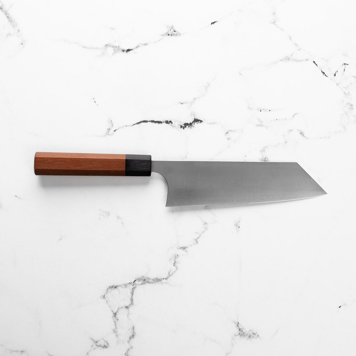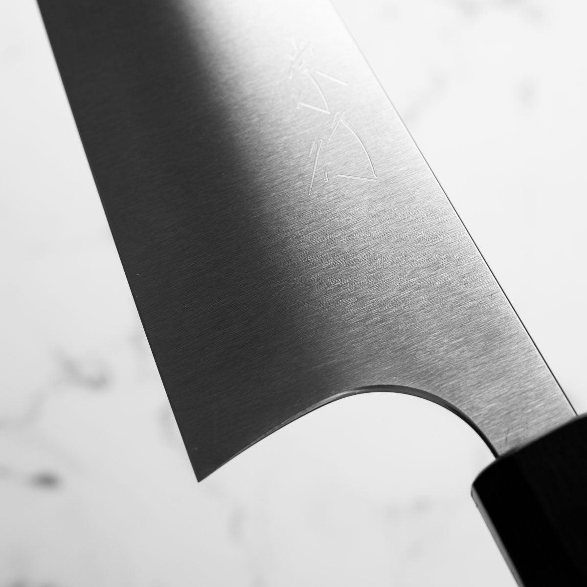 The Bunka knife, a versatile and traditional Japanese kitchen tool, features a distinctive, angular tip and a wide blade. It's designed for precision tasks like slicing, dicing, and chopping. Ideal for handling vegetables, meat, and fish, the Bunka is a multifunctional knife celebrated for its utility and unique aesthetic.