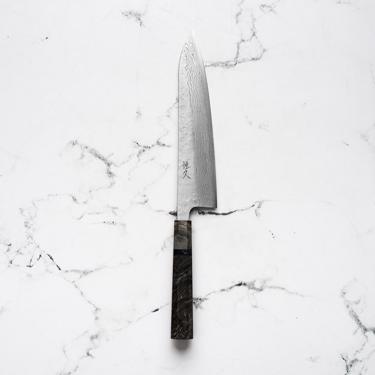 Tsunehisa 440C Damascus Tsuchime Gyuto 210mm - Dark Maple