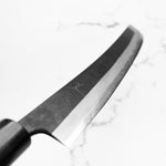 The Sakimaru knife is a specialized Japanese knife, often regarded as a variation of the traditional sashimi knife. It features a long, slender, and gracefully curved blade, designed for making precise, thin cuts of fish, particularly for sashimi. The Sakimaru's elongated shape allows for drawing long, uninterrupted slices, embodying the art of Japanese culinary techniques.